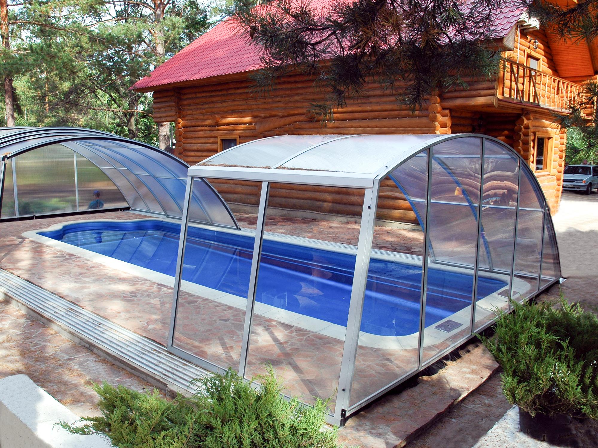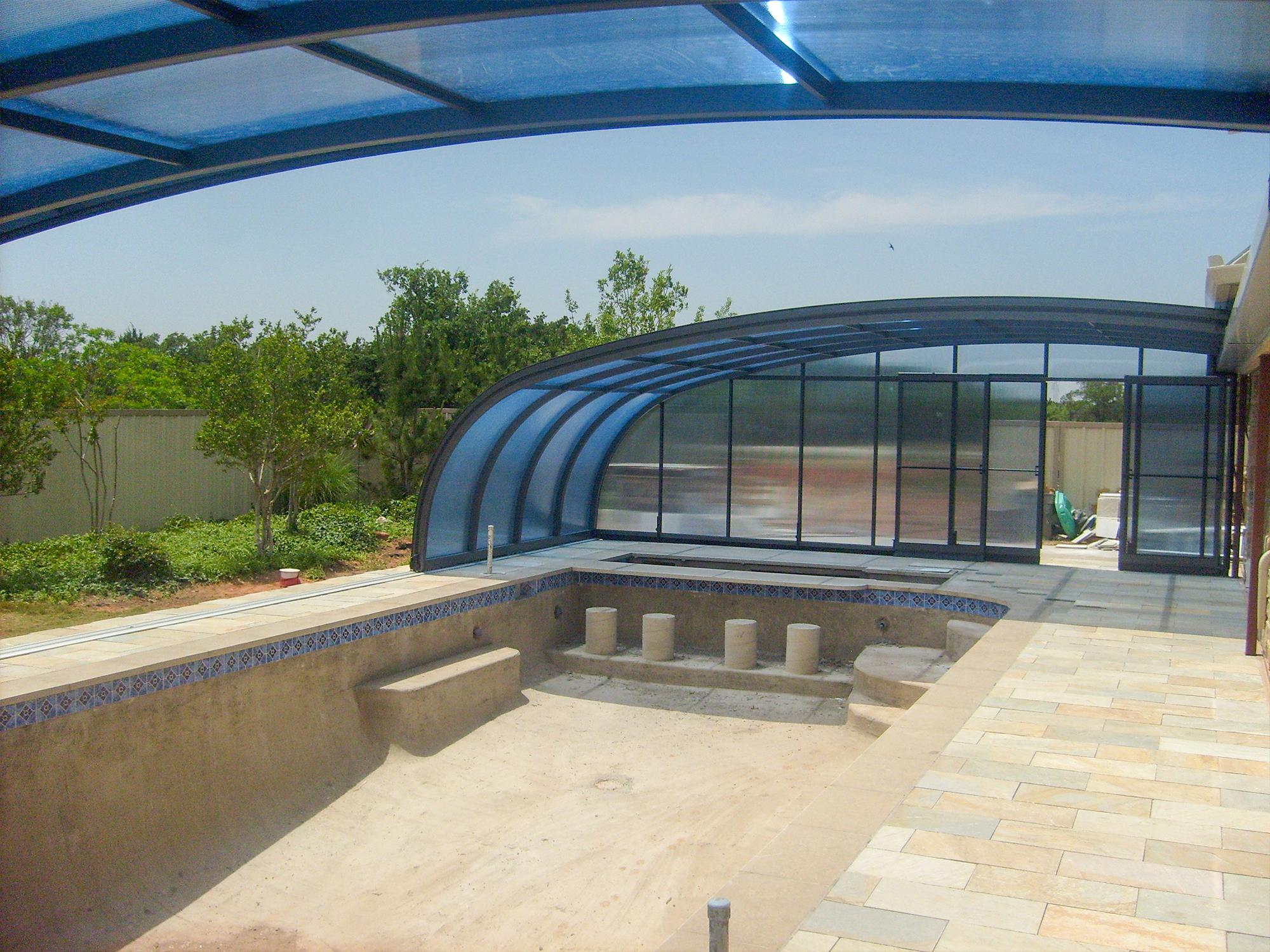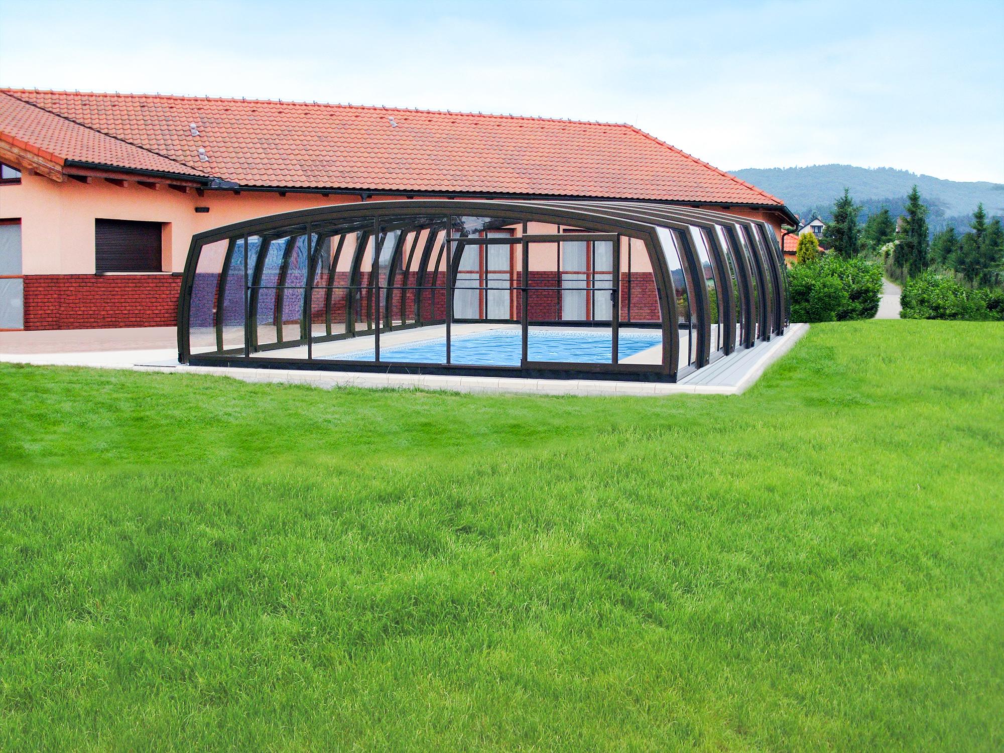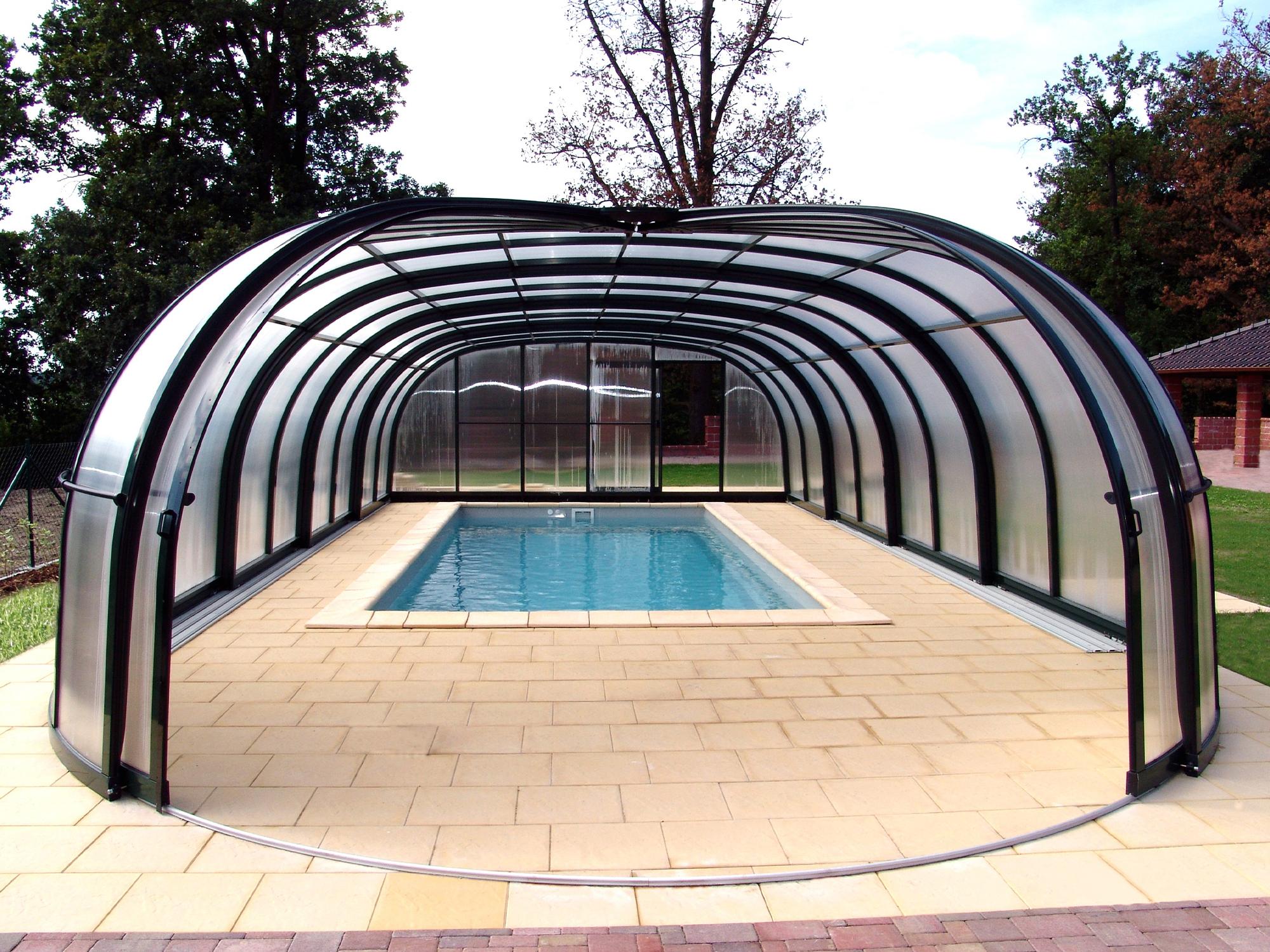 High pool enclosures are suitable for customers who would like to walk under the enclosure or even create lovely leisure space. Thanks to an advanced sliding system you can slide individual segments in both directions (segments are not locked into each other - that way you can move each segment freely) In matter of minutes the whole enclosure can be retracted back away from the swimming pool area. When the segments are pushed together you can create a useful storage space that it is protected from wind and offers a convenient area for garden furniture or relaxation with family and friends. High pool enclosures provide you with freedom of movement around the enclosed pool making it a perfect solution for sheltered swimming and sitting for family and friends.